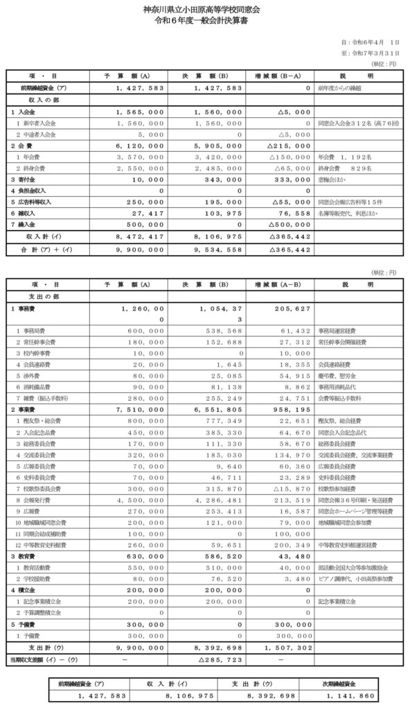令和7年度 総会資料(3) 令和6年度 一般会計決算書 ※クリックで拡大します 令和7年度 総会資料 資料(1) 令和6年度 会務報告 資料(2) 令和6年度 事業報告 資料(3) 令和6年度一般会計決算 資料(4) 令和5年度 財産台帳 資料(5) 令和7年度 事業計画 資料(7) 令和6年度 一般会計予算 参考資料(2) 「『がんばれ!小田高』応援基金」会計報告 クリックして X で共有 (新しいウィンドウで開きます) X Facebook で共有するにはクリックしてください (新しいウィンドウで開きます) Facebook クリックして印刷 (新しいウィンドウで開きます) 印刷