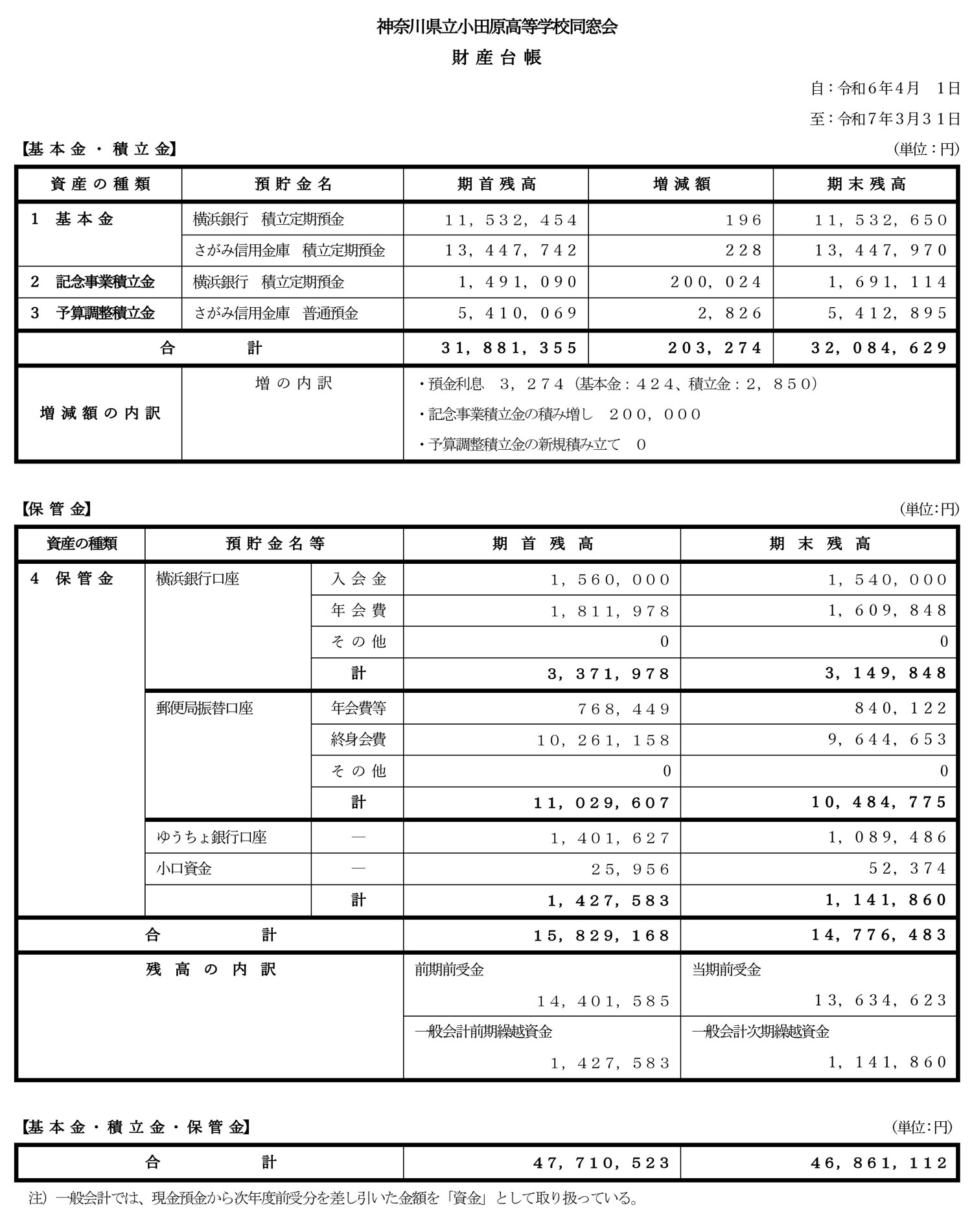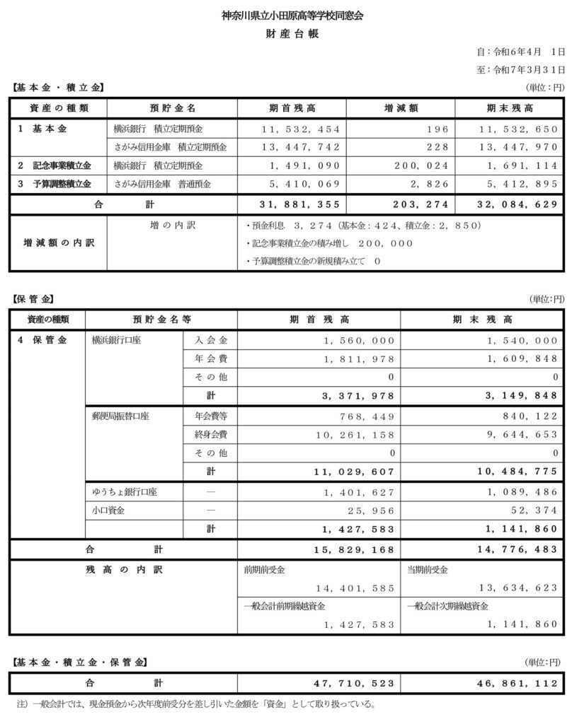令和7年度 総会資料(4) 令和6年度 財産台帳 ※クリックで拡大します 令和7年度 総会資料 資料(1) 令和6年度 会務報告 資料(2) 令和6年度 事業報告 資料(3) 令和6年度一般会計決算 資料(4) 令和5年度 財産台帳 資料(5) 令和7年度 事業計画 資料(7) 令和6年度 一般会計予算 参考資料(2) 「『がんばれ!小田高』応援基金」会計報告 クリックして X で共有 (新しいウィンドウで開きます) X Facebook で共有するにはクリックしてください (新しいウィンドウで開きます) Facebook クリックして印刷 (新しいウィンドウで開きます) 印刷